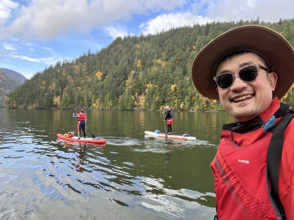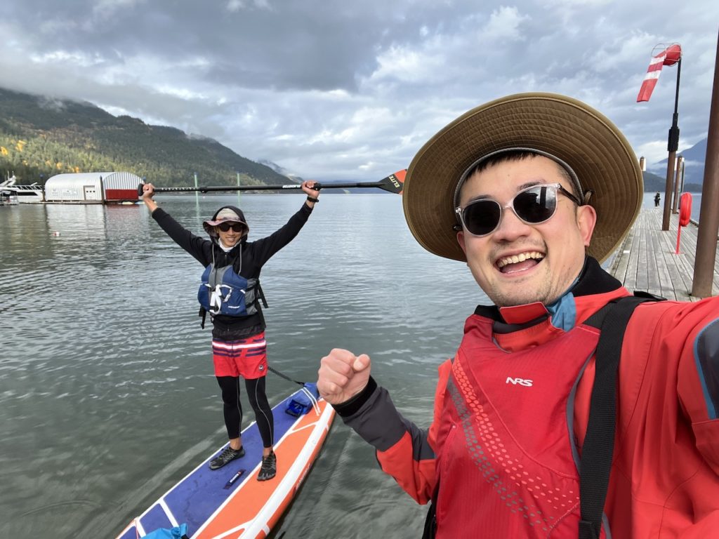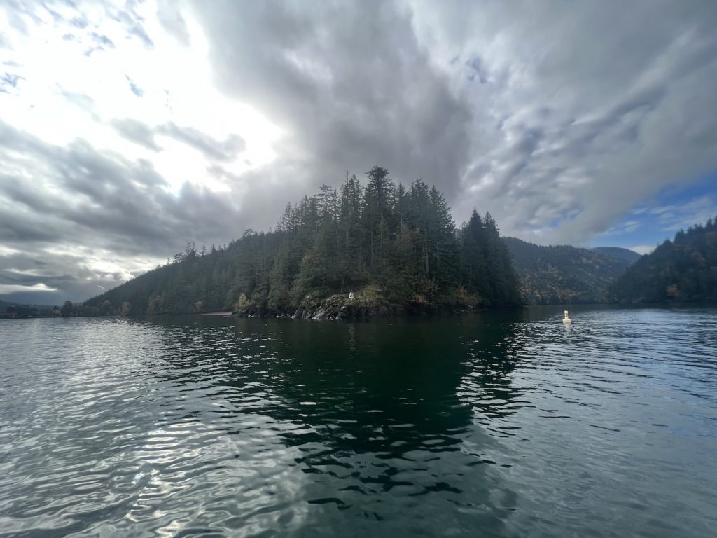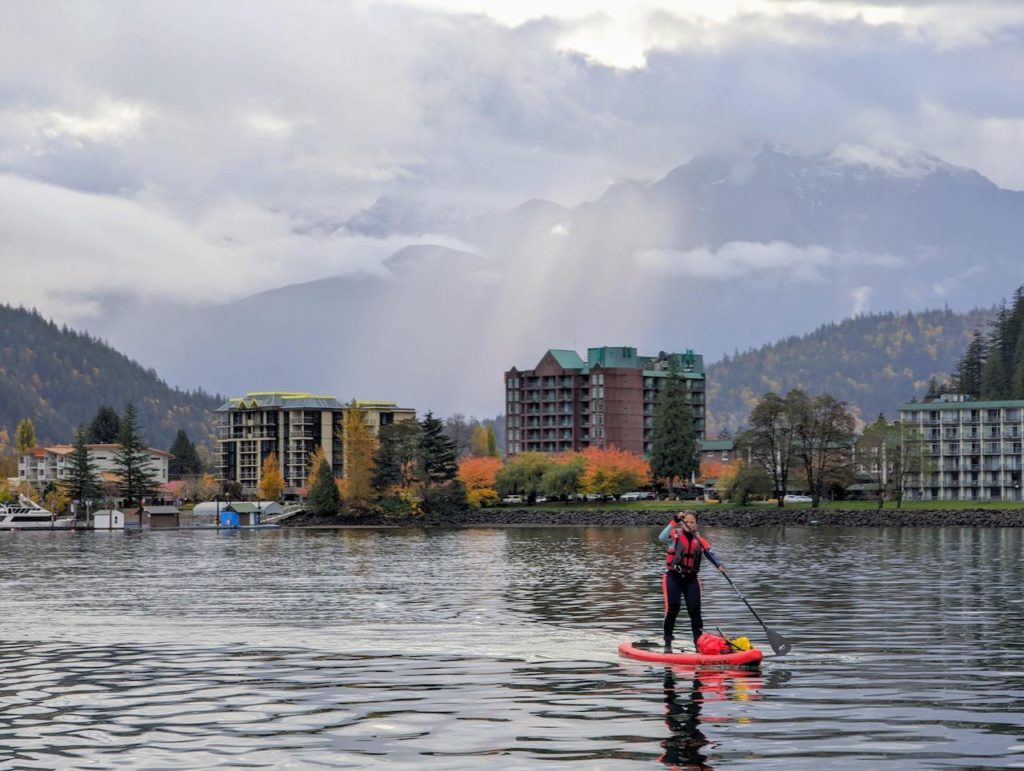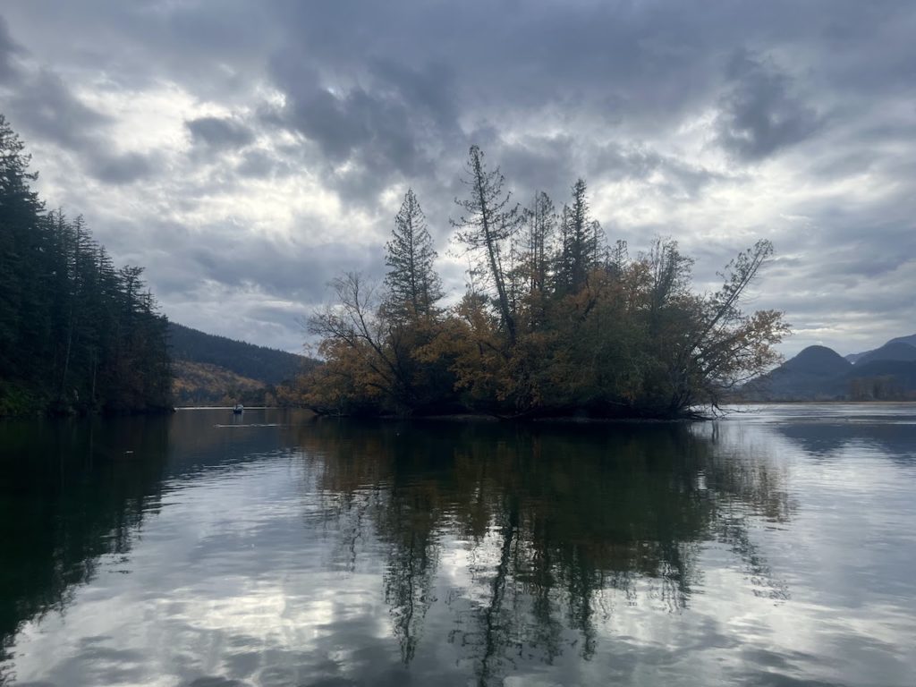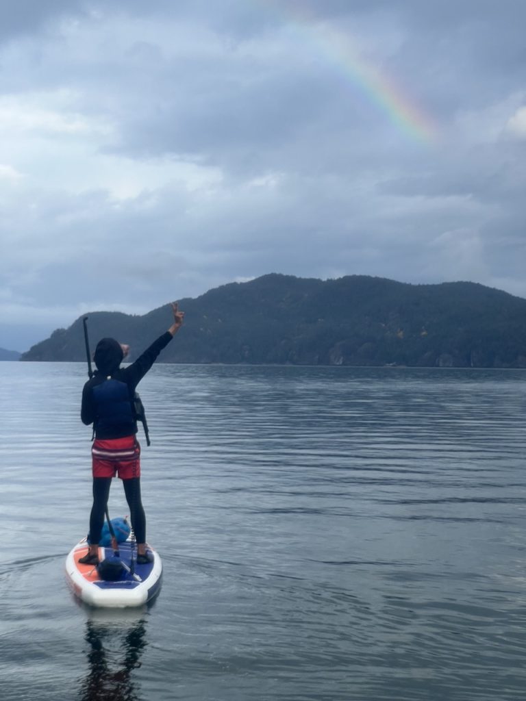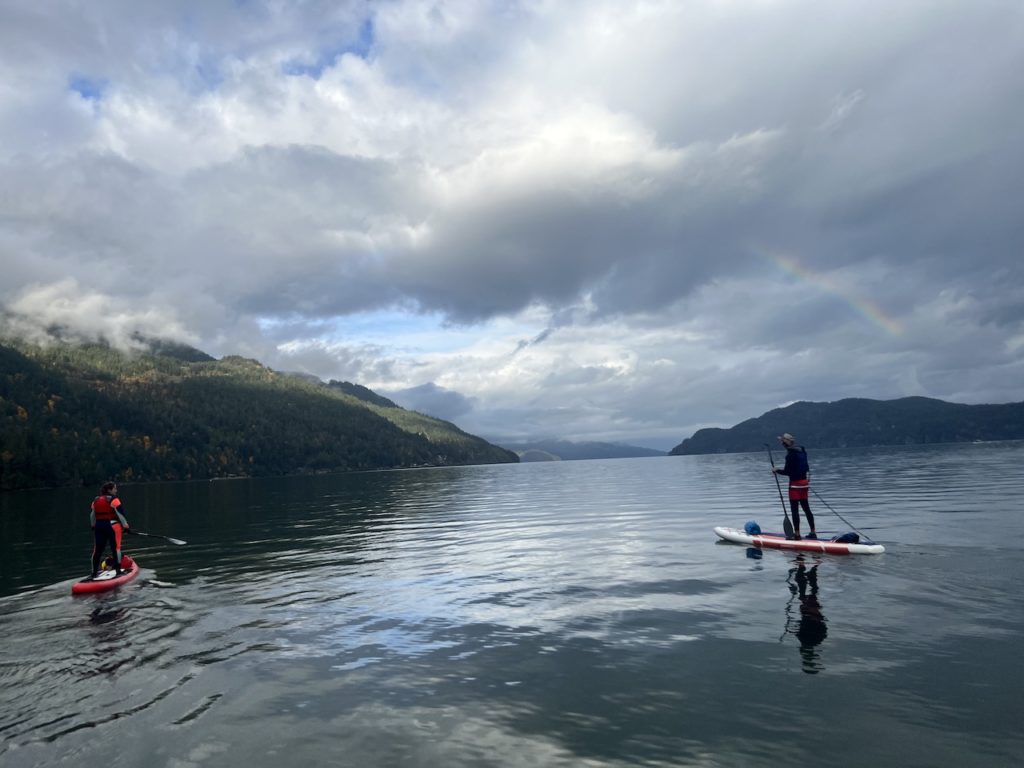 We felt incredible as not only did the forecasted drizzle not materialize, the sky was actually breaking a little. Even the notoriously choppy Harrison Lake was sleepy and calm. Just as we thought we couldn’t have chosen a better day, we were greeted with a rainbow.