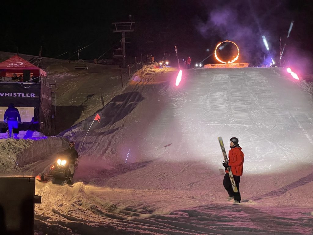 After a long day of snow fun, we finally met up with Daddy and Big Bro. In the evening, we were lucky to catch front row seats for the Fire and Ice Show put on by Tourism Whistler every Sunday evening (from December to March). The spectacle starts at 7pm (7:30pm in March) next to the Whistler gondola base. To get the best viewing spots, arrive 30 mins early to watch the skiers and riders warm up.