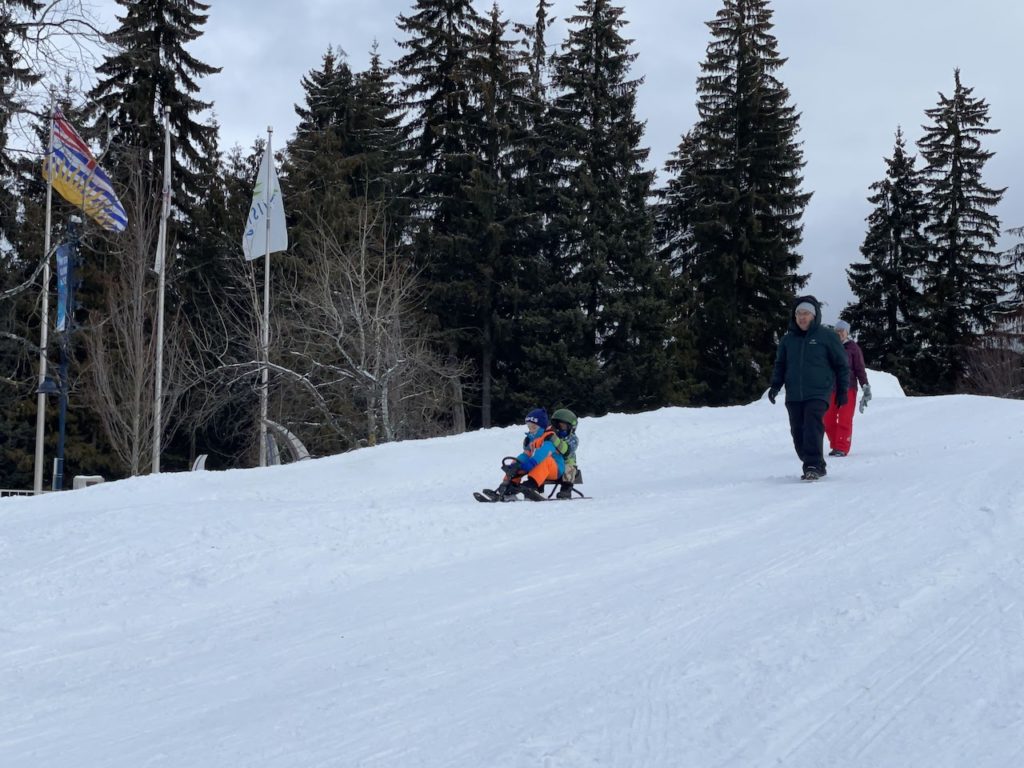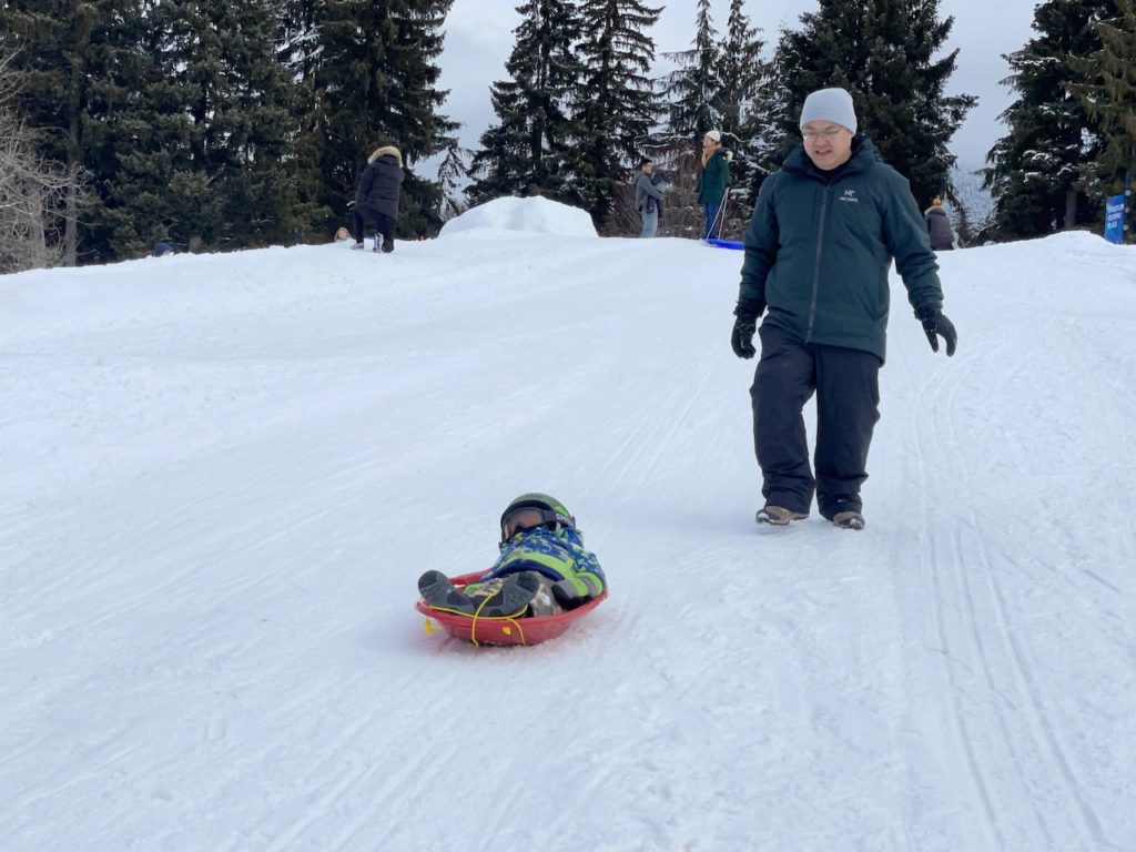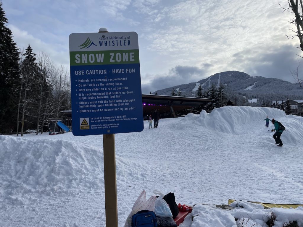 Our second day in the village, we decided to check out the Olympic Plaza while Big Bro is skiing. There is even a small little sledding “Snow Zone” right beside the ice skating rink.