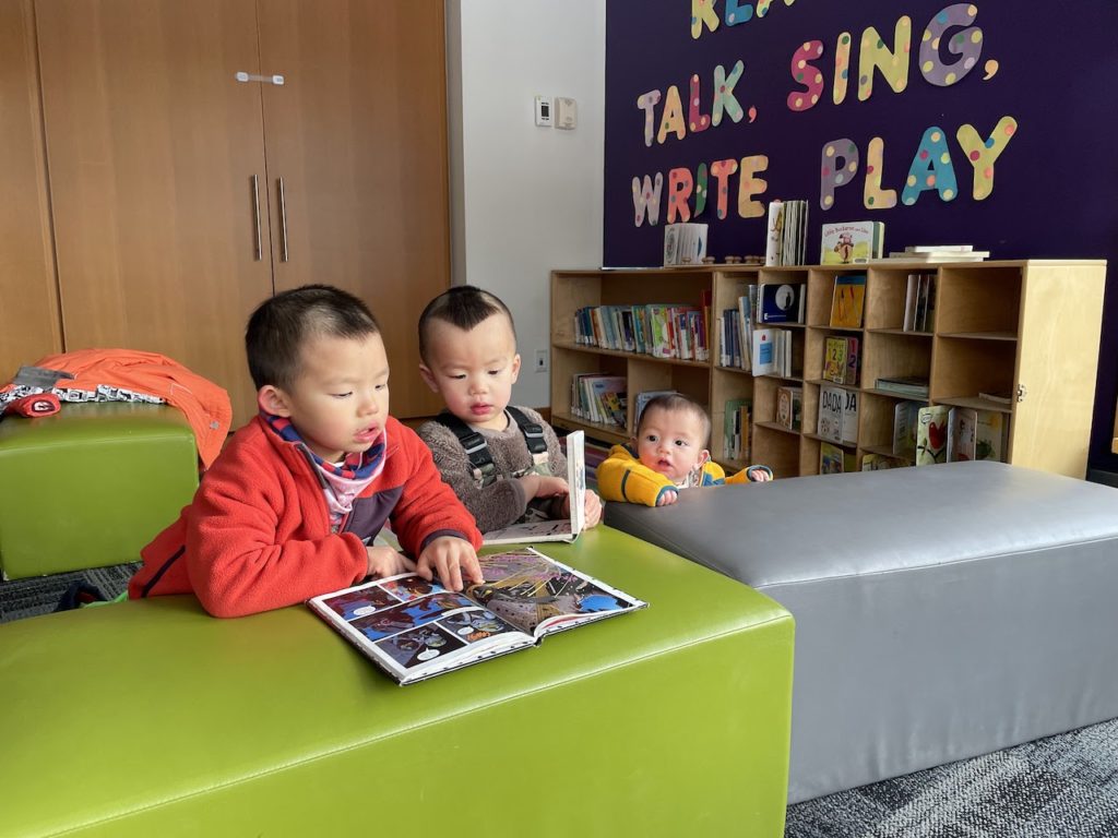 This is our first time visiting the library and we were all quite excited when seeing how nice and new looking the exterior is! It is also such an amazing place to hang out with kids and get out of the January cold.