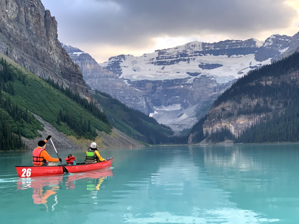 I’ve visited Lake Louise many times with my family before, but we’ve never been on the lake due to time constraints and high cost of canoe rental here.