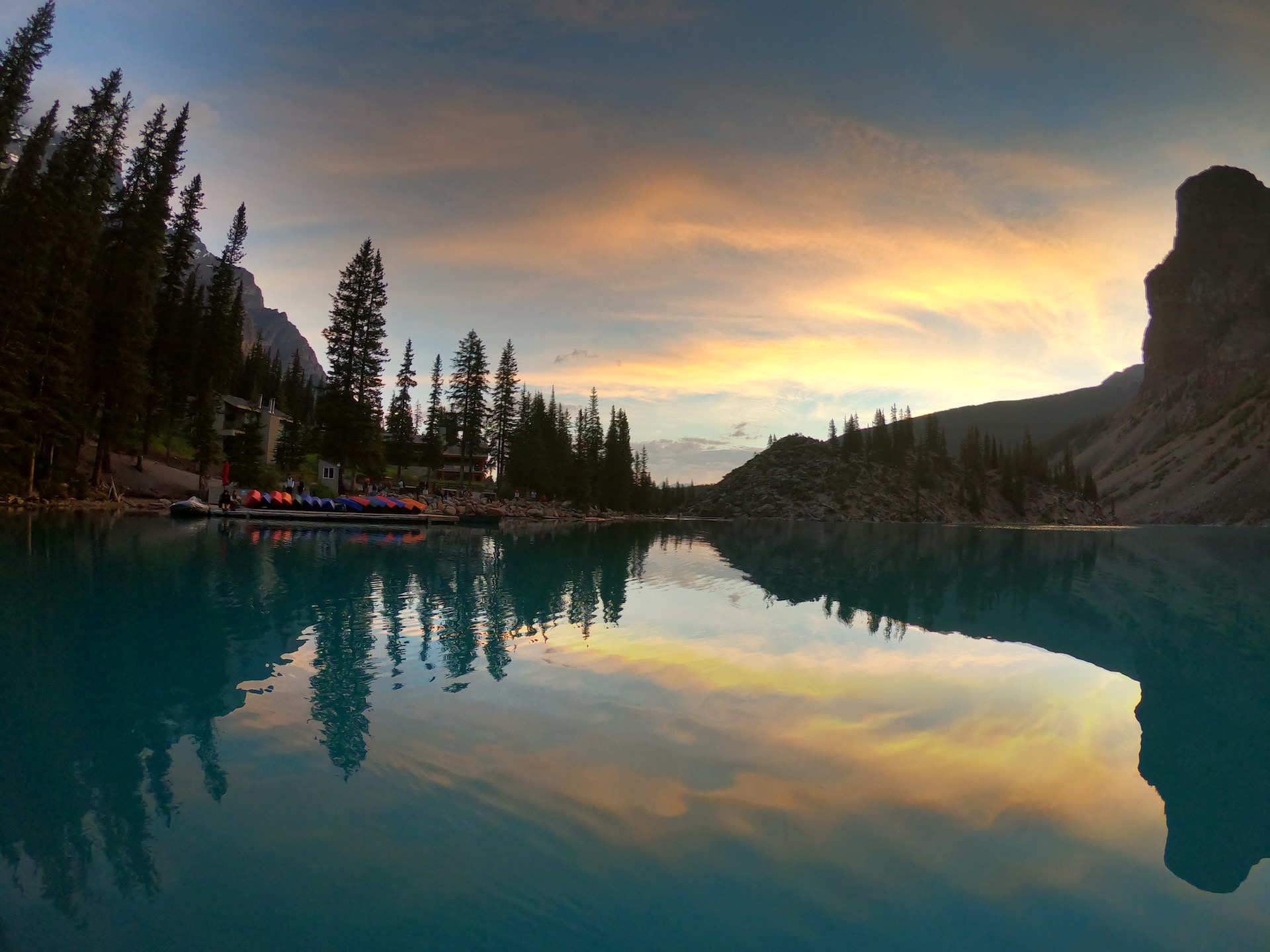 I arrived just after 6am, and the parking lot was already filling up. Moraine Lake is insanely popular; by 6am there usually aren’t any regular spots left. Due to COVID-19 this year there are no tour busses, so cars are allowed to park in the bus parking spots (we checked with the traffic people), but the signs still say bus-only. Even these insider spots get filled up around 6:15am on a weekday. I couldn’t figure out just why it’s so crazy this year, since I don’t see any parking spots blocked off to control volume. My guess is that since there are way more locals here this year than tour groups, more of us hike, grab food, or otherwise linger longer than previous years. And once people caught wind that parking lots fill up really early, it became an arms-race to see who can get there earlier.
