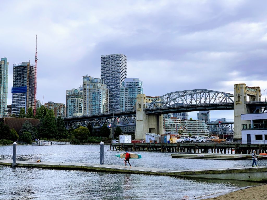 It was windy and overcast, and I could see some serious choppy waves coming from English Bay. But the False Creek channel was as calm as ever. I headed east into the channel to explore Granville Island by water. Pre-COVID, Granville Island was one of our favourite spots in Vancouver for its restaurants, markets, artisan shops, and Kids Market. We have avoided visiting since the pandemic started. Seeing our beloved park from the water and not knowing when we can actually safely visit again was pretty surreal.