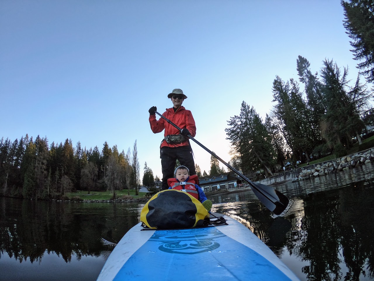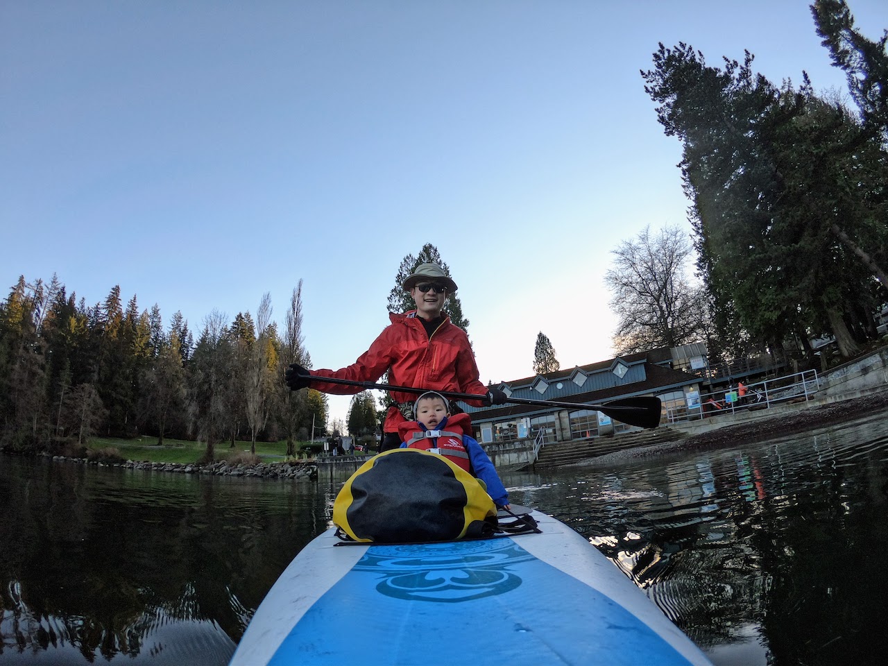 After snowshoeing on the nearby Mt. Seymour, we came to Deep Cove about 1 hour before sunset and tested out the new wetsuit we got for Junior. Rather than counting down to the warmer days to go paddling, why not just make ourselves warmer instead?