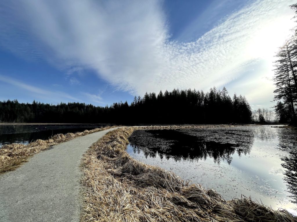 On this bright February weekend, we visited the Minnekhada Regional Park. It’s a very quiet and lush park, featuring forests, marshes, and some view points on rocky outcrops.