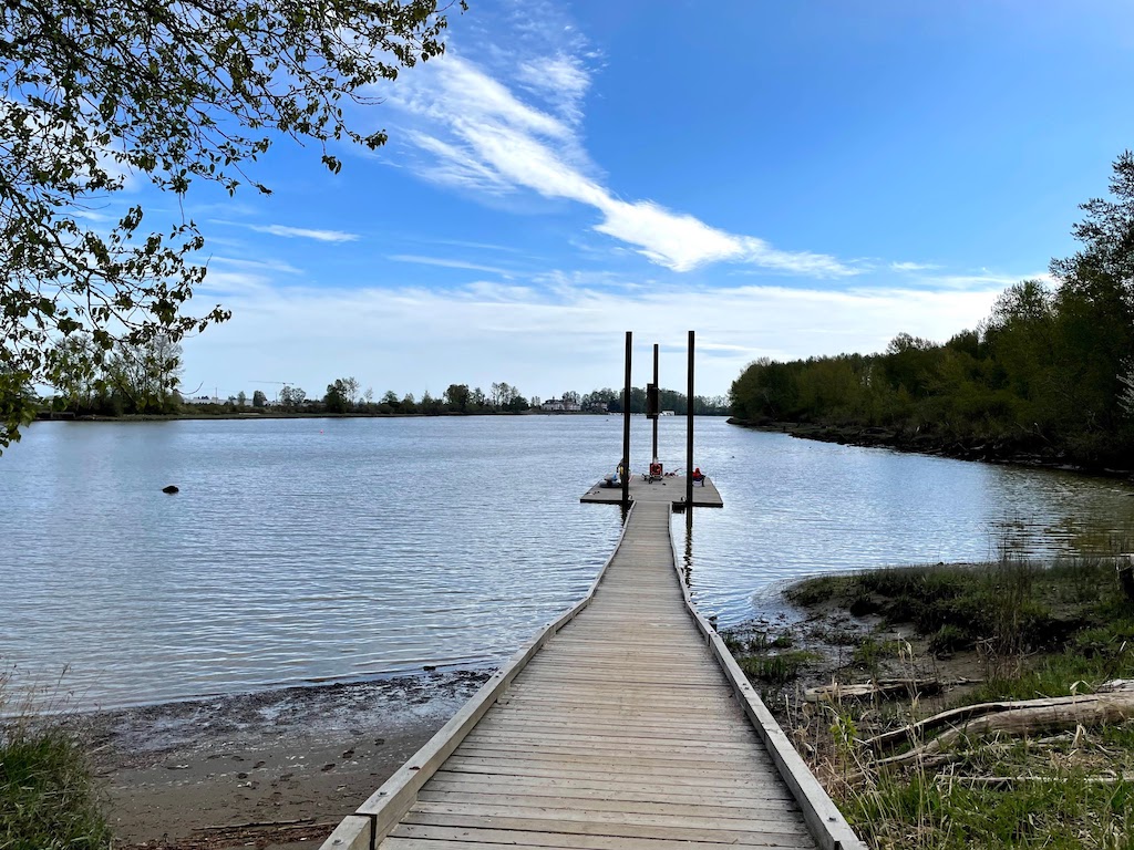 The public dock in Deas Island Regional Park (49°07’34.5″N 123°03’18.2″W) is very close to a large gravel parking lot which is almost never full even on a sunny weekend. This is the inner most launch point of Deas Slough and a great launching location to explore the slough and Ladner Marches downstream. The rest of Deas Island Regional Park is worth exploring as well.