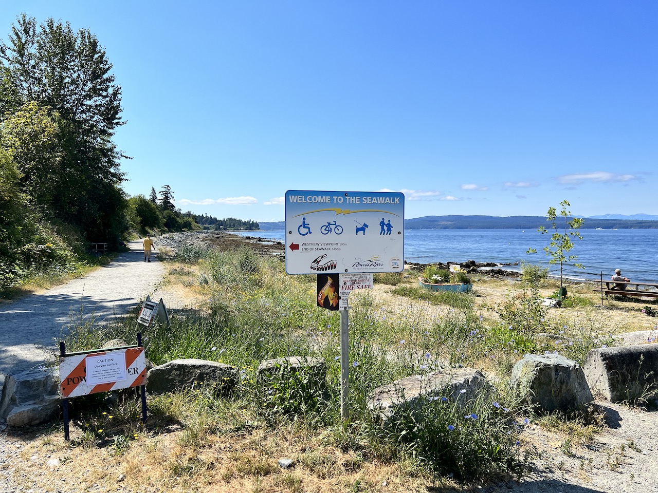 The Powell River Sea Walk is a flat, 2.7km out and back trail (1.3km one way) right on the water’s edge starting near the ferry terminal. The views of the Straight of Georgia and Vancouver Island were fantastic.