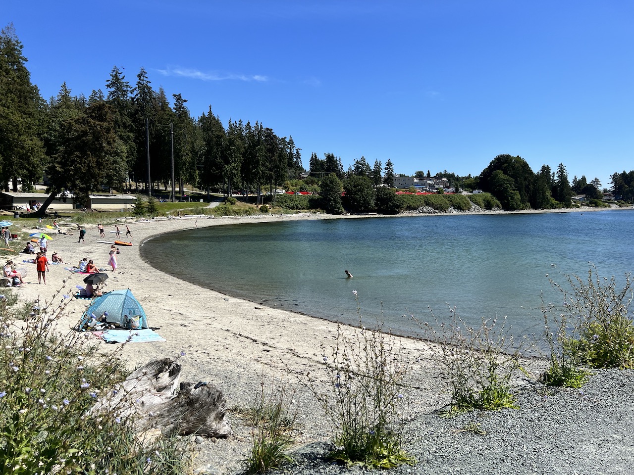 Willingdon Beach Park is a family friendly multi-use park that has sandy beaches, a small dock, green lawns, a playground, a concession stand, public washrooms, and even a municipal beach front campground.