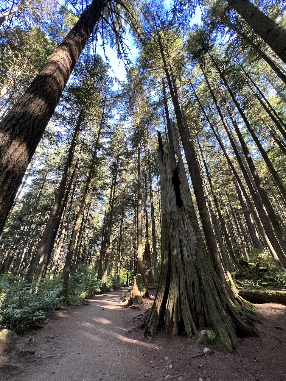 This hike is a great example of the lush temperate rain forests we are blessed with on the BC Coast. Towering trees cover most of the hike, with a small Mystery Creek running alongside a steep, rocky section.