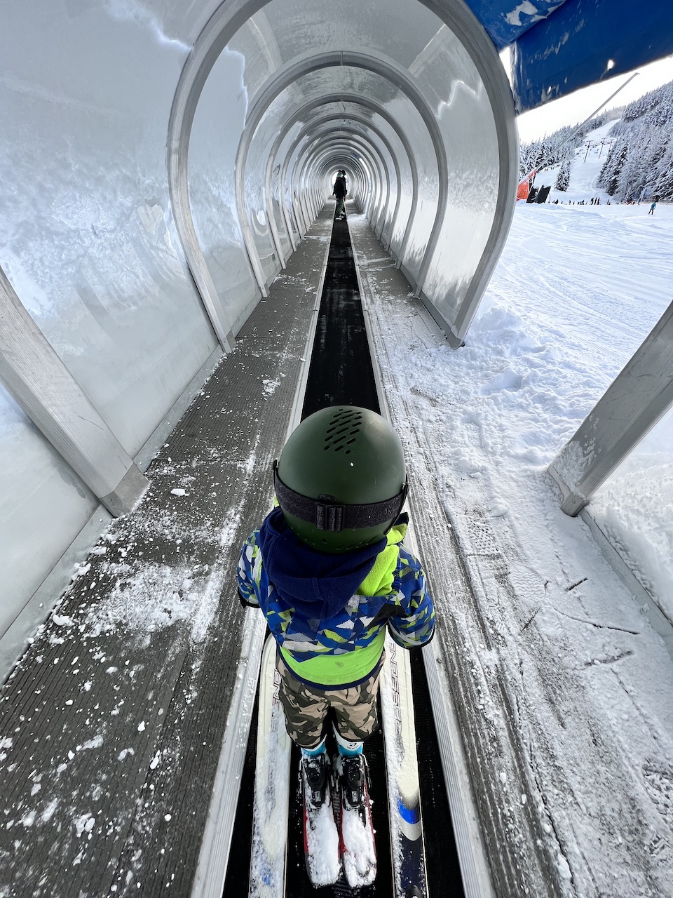 One major downside with teaching kids skiing in the Mid Station area is that anyone who wants to watch the kids ski would need to buy a gondola ticket to get here. As a result, Tina acted as our mobile base of operations at the village and didn’t get to see the kids skiing this trip.