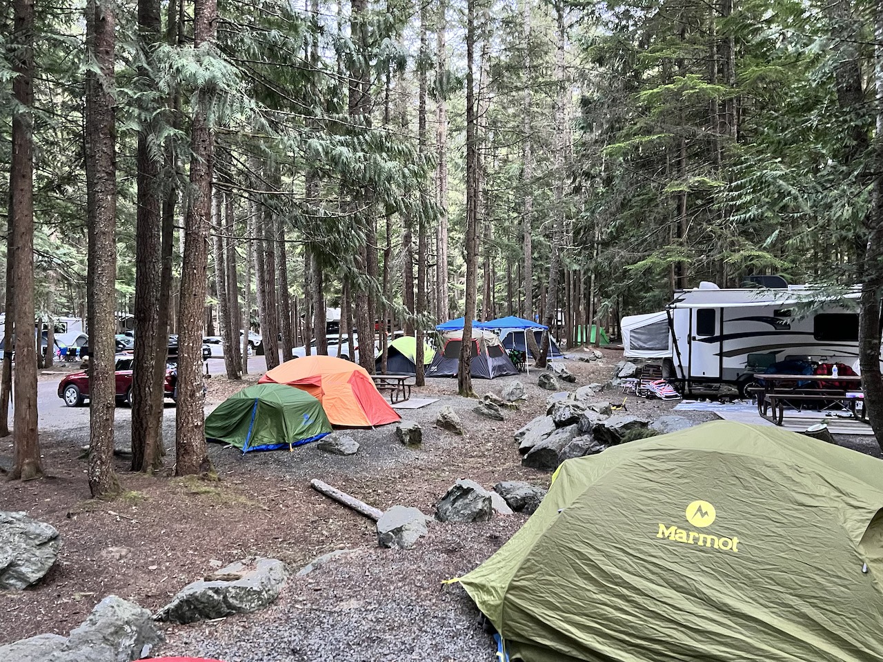 Our camping trip started on a Friday evening after school. We stopped by Chilliwack for dinner and charging our EV since I wanted to have as much juice as possible before heading up the isolated cellphone black hole 40km from service. The drive in was quite lonely and frankly a little unsettling. We were one of the only cars along the 40km stretch of isolated Chilliwack Lake Road. If we got into any kind of trouble, I wasn’t sure what we could do other than wave down a passerby.