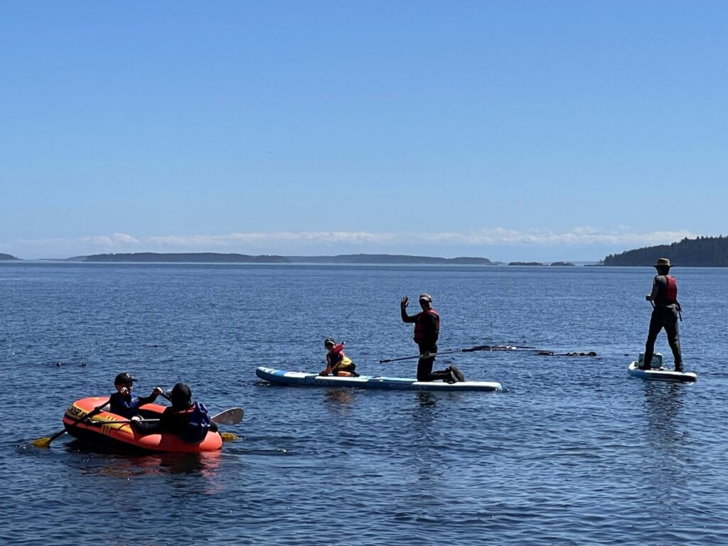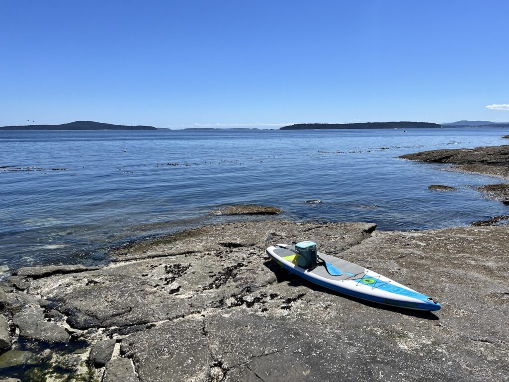 Near the shared fire ring near campsite 28 and 29, there’s an easy access to the beach. We noticed that there was a canoe parked here, and upon closer inspection, we determined that an area of gentle sloping rock bed is an acceptable launch point for our paddleboards and raft. Mid to high tide would be ideal for launching here, as the seaweeds and barnacles become exposed during low tide.