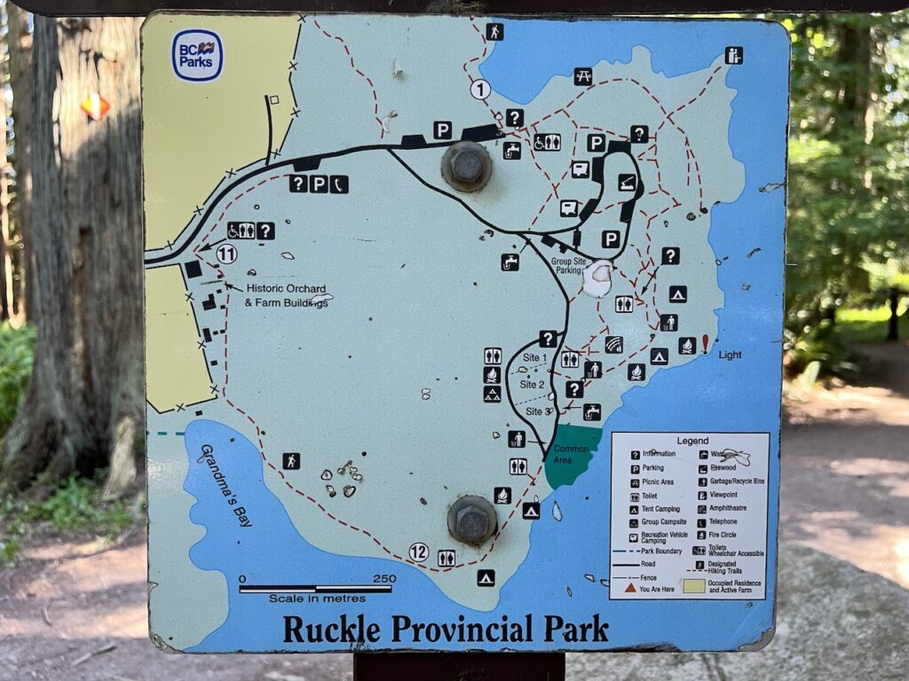 We took a leap and booked a group site at one of the most beautiful places we’ve camped at so far: Ruckle Provincial Park on Salt Spring Island. We figured we have enough camping friends to muster, so we made an executive decision on the dates and site, as time was of the essence; most summer weekends are already booked up.
