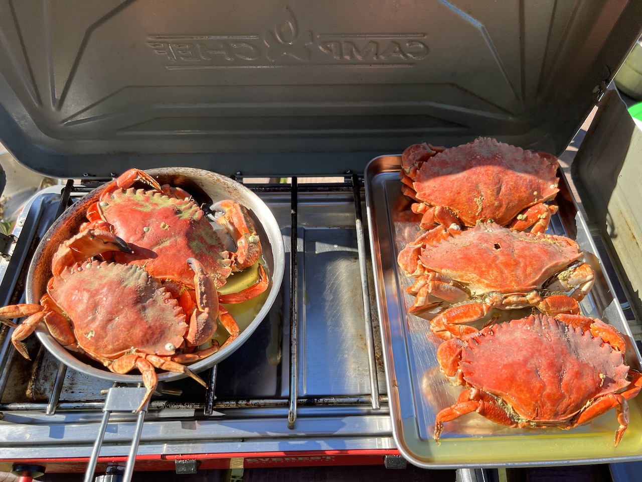 Energized, I came back with my crab traps. SUP crabbing from camp is one of my favorite activities. There are mostly red rock crabs here, and we were highly successful.