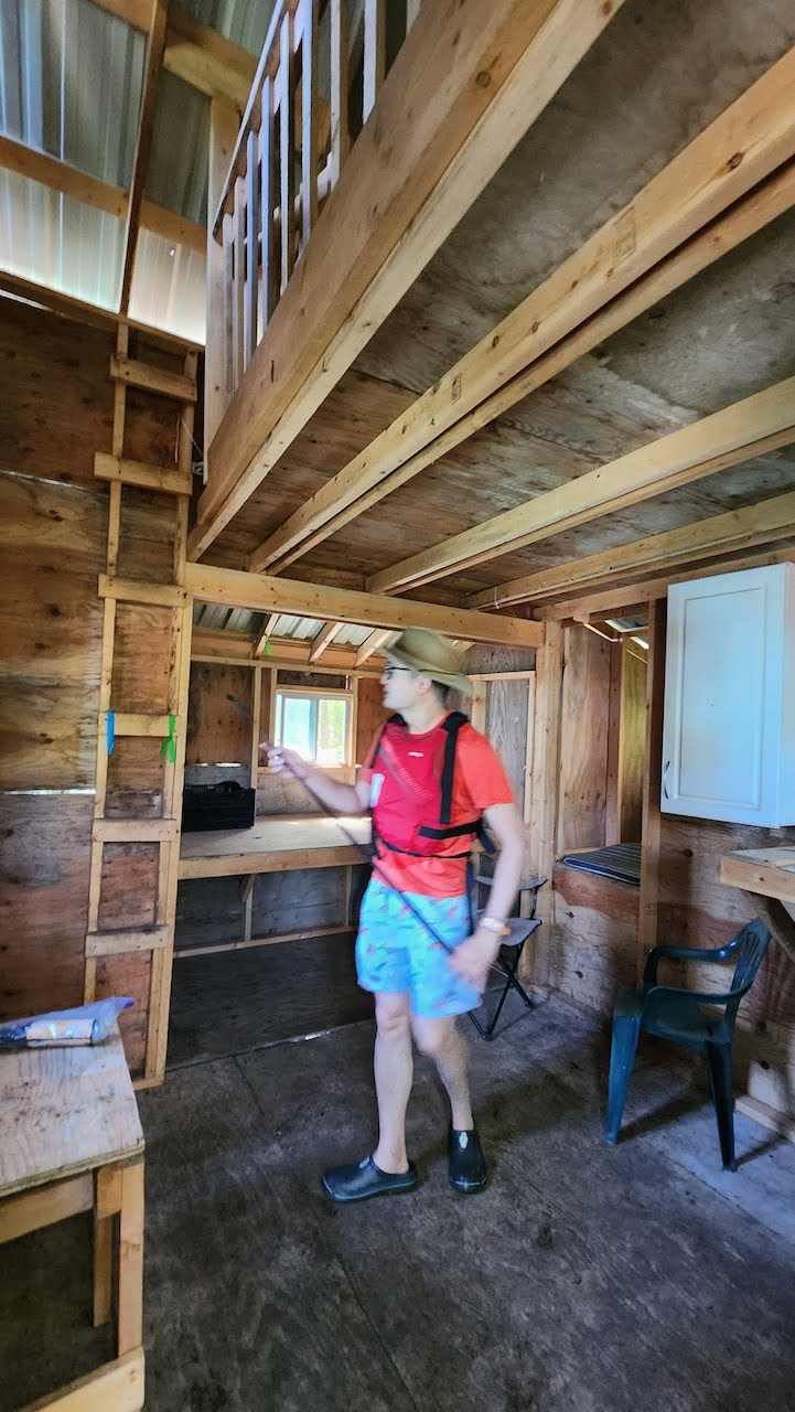 We took our time to explore the western shore. Soon we arrived at one of the many cabins on the lake that are open for public use, with an outhouse in the back. The cabin was well built, likely by actual trades people with proper skills, materials, and equipment, since it even has a 2nd floor.