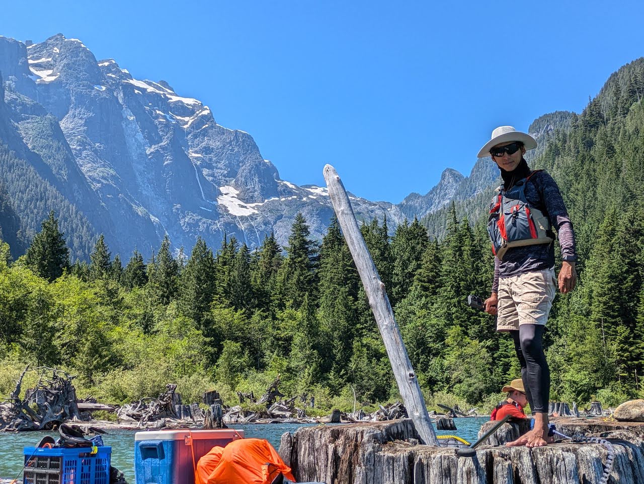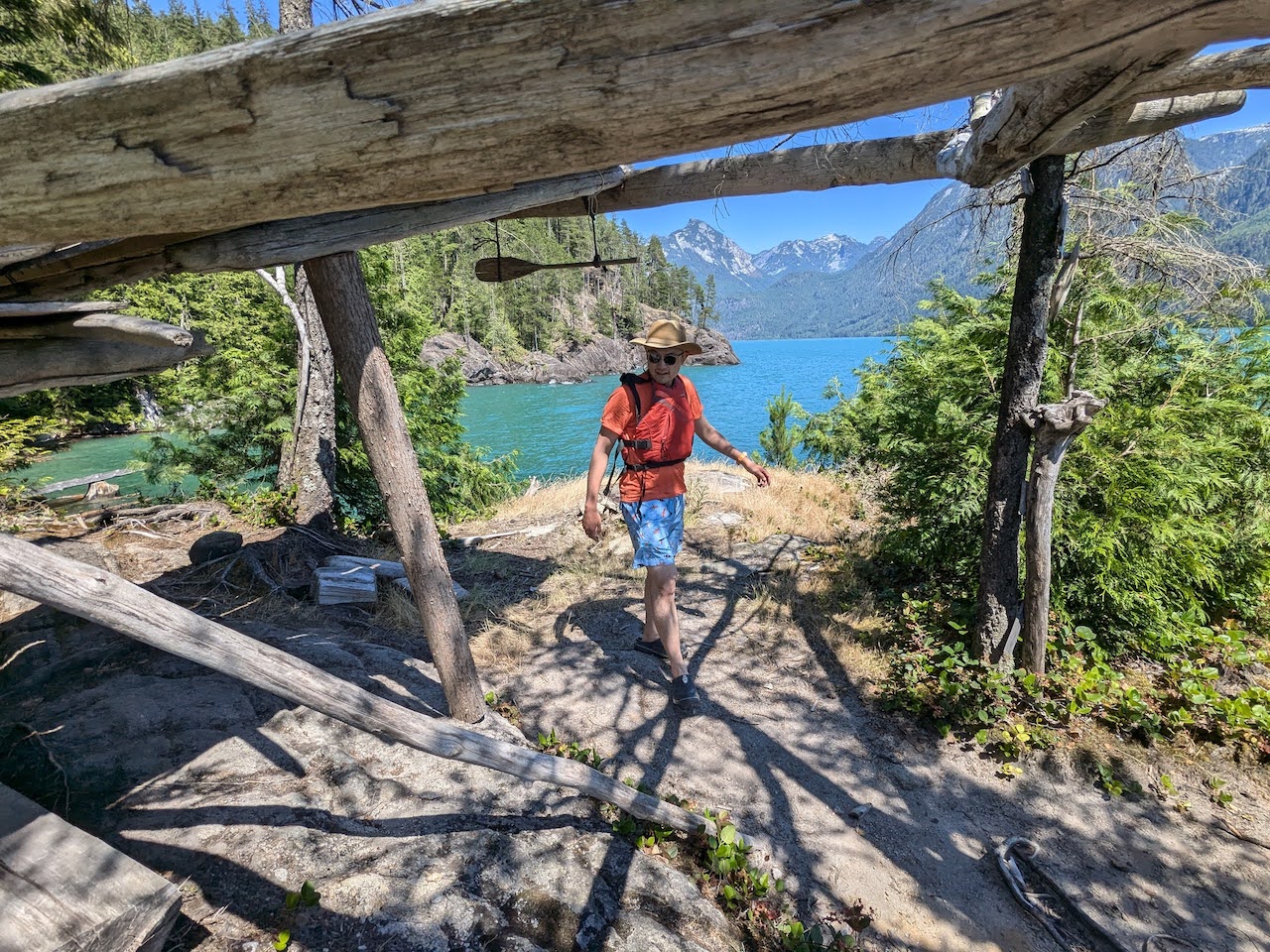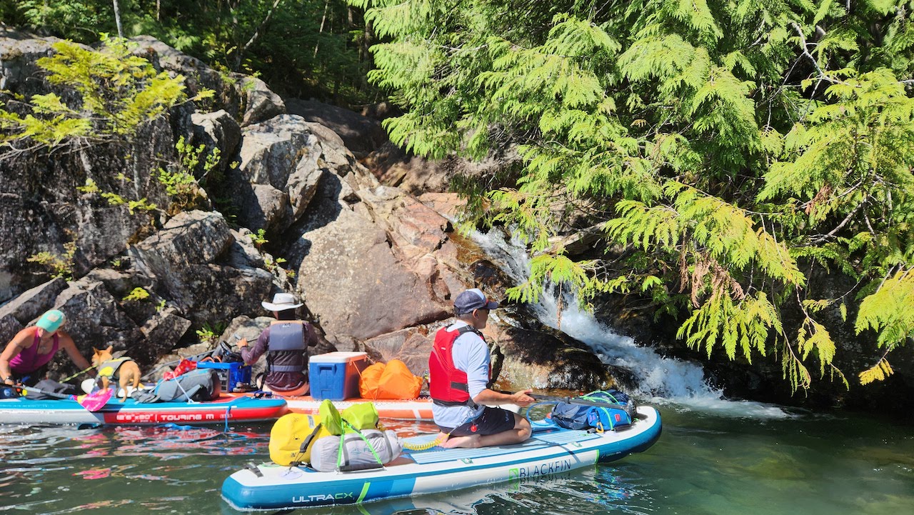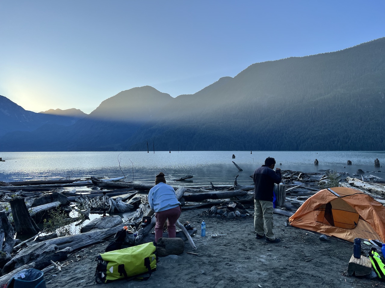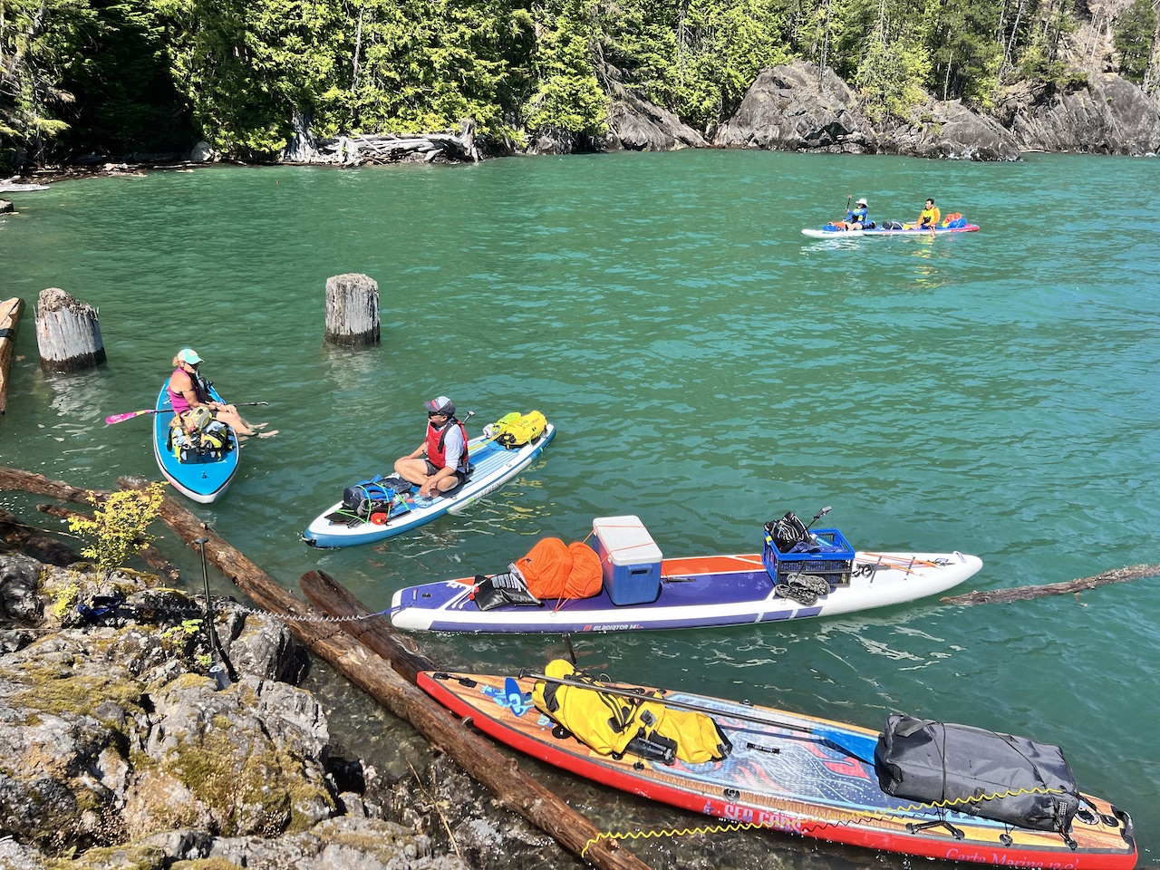There were some friendly boaters at the rocky beach. The high water level meant that large sandy areas were flooded, so area suitable for camping was limited. Thankfully the boaters were only there for a short stop. One guy told us he explored every beach on Stave Lake, and there were many hidden gems to find, including one grand cabin with a porch and glass doors. A 4-5 day, careful circumnavigation of Stave Lake may be in order.