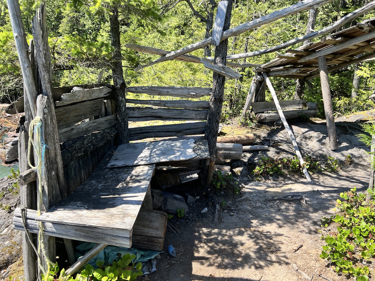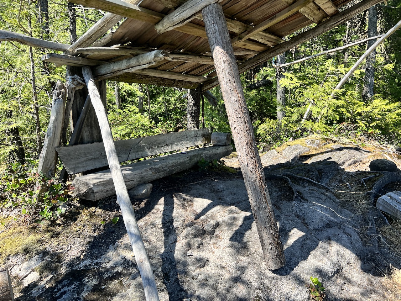 It turned out that it’s almost impossible to land at Cottage Point, and it’s little more than a shed and some benches built out of drift wood. There’s barely enough room for one small tent on this rocky outcrop.