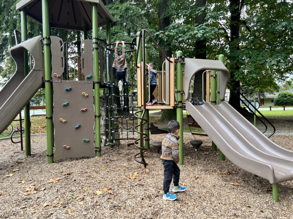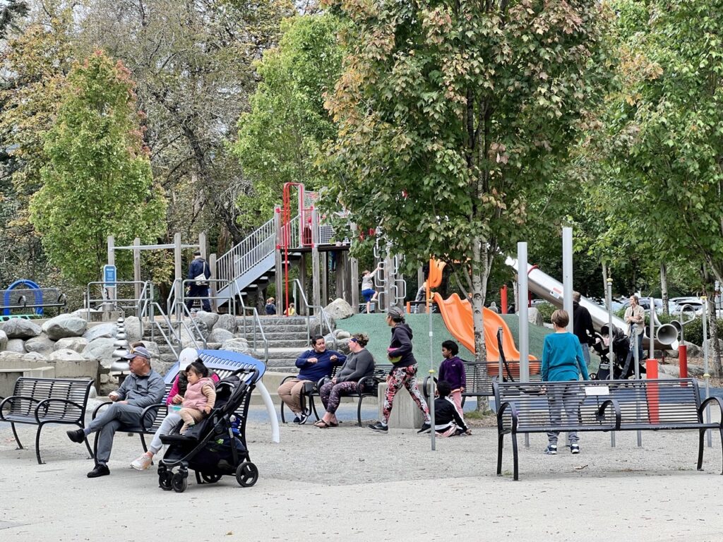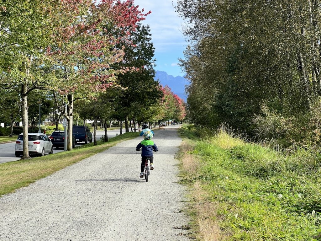 After passing under Lougheed Highway, we arrived at Lions Park. We couldn’t believe it but the boys actually still had plenty of energy left in the tank so they spent another good 20 minutes at the playground before continuing. Near Lions Park there’s Shaughnessy Station Mall with lots of food options too.