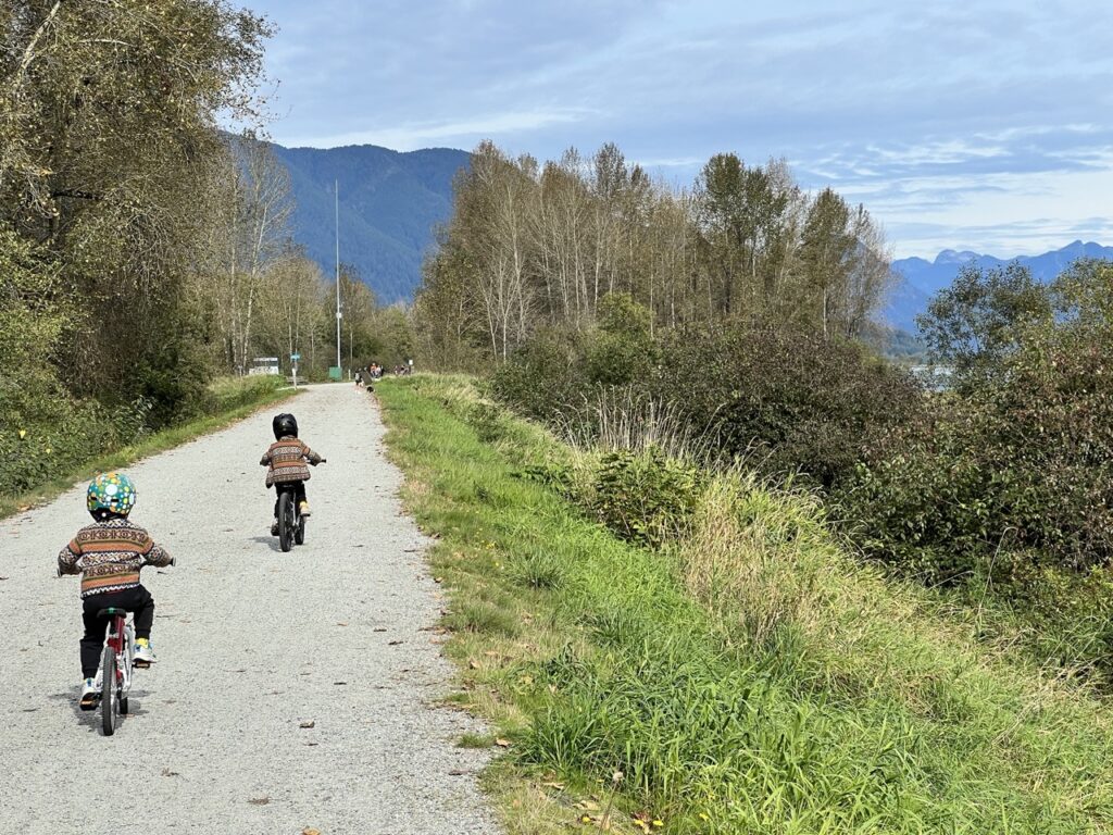 The Traboulay PoCo Trail is a fantastic route for bikers. With the varied views of rivers, marsh, industry, and forests, as well as the many parks to take breaks at, this loop is hard to beat. The only comparable route we’ve done would be the Valley Trail at Whistler, but I think it has more on-road biking than the PoCo Trail if we were to make a 30km loop.
