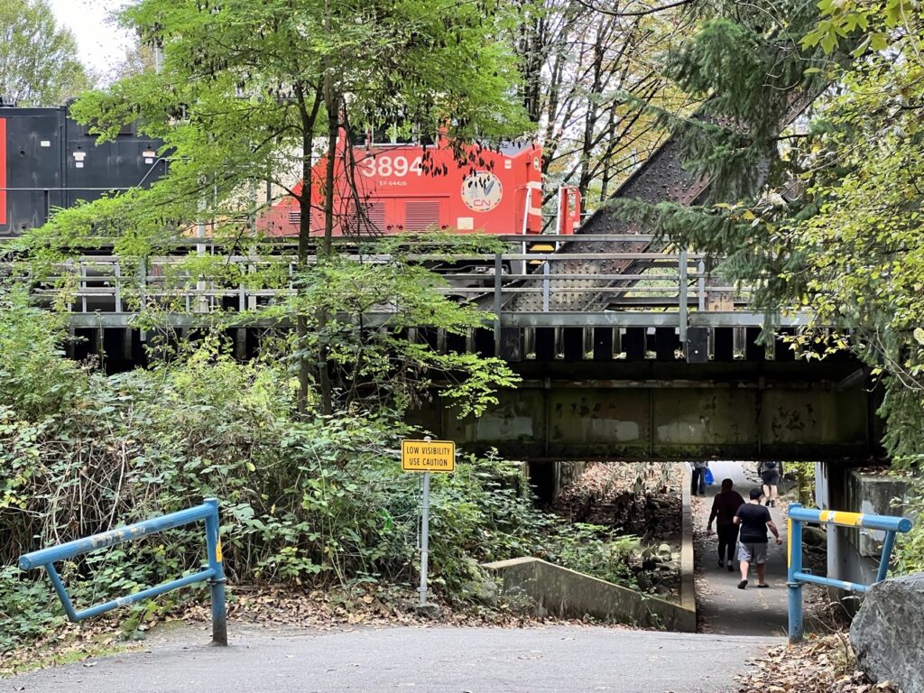 We took our time on the South Pitt River leg, which was about 6km. Parts of this section were distinctively industrial, going past a work yard and for a short time, along the very busy Mary Hill Bypass in a tunnel under railway tracks.