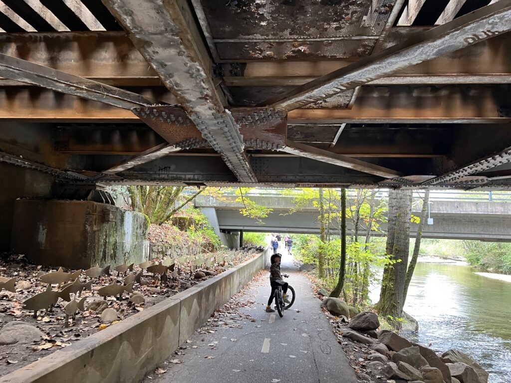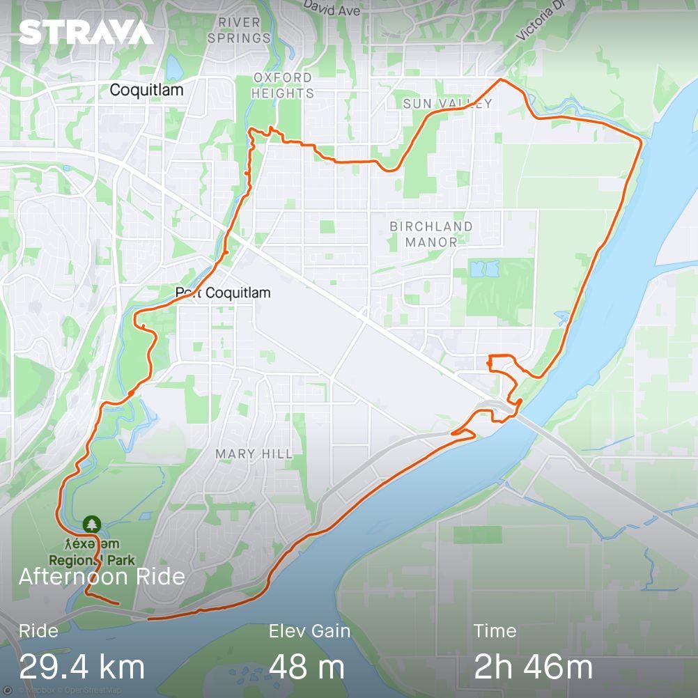 It was a little confusing to cross the Red Bridge, but we had to go under the bridge first and use the southern bike lane on the bridge to cross. The PoCo trail signage was helpful, and so was Strava.
