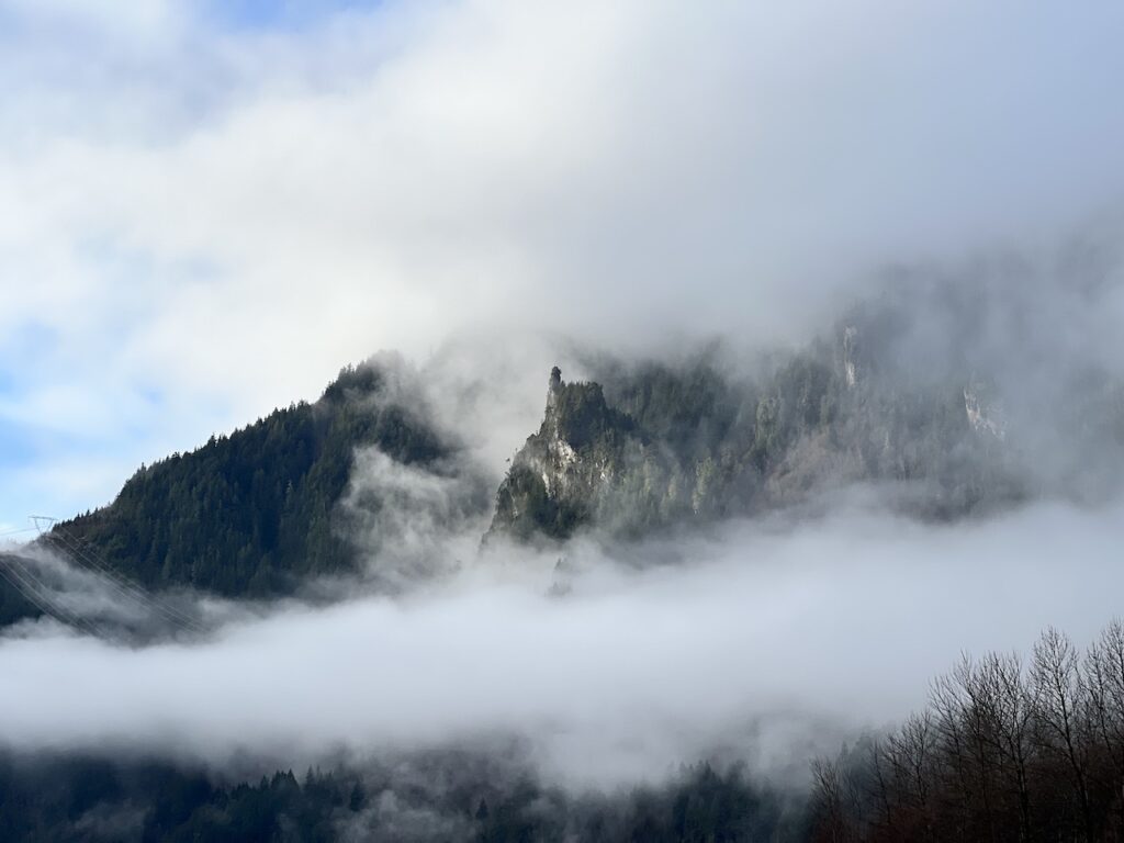 Our wonderful guide Howard pointed out the cool-looking “Castle Rock” on the other side of Squamish River, which is formed vertically by lava being pushed upwards. The clouds perfectly framed the Castle and reminded me of Castle in the Sky by Studio Ghibli.