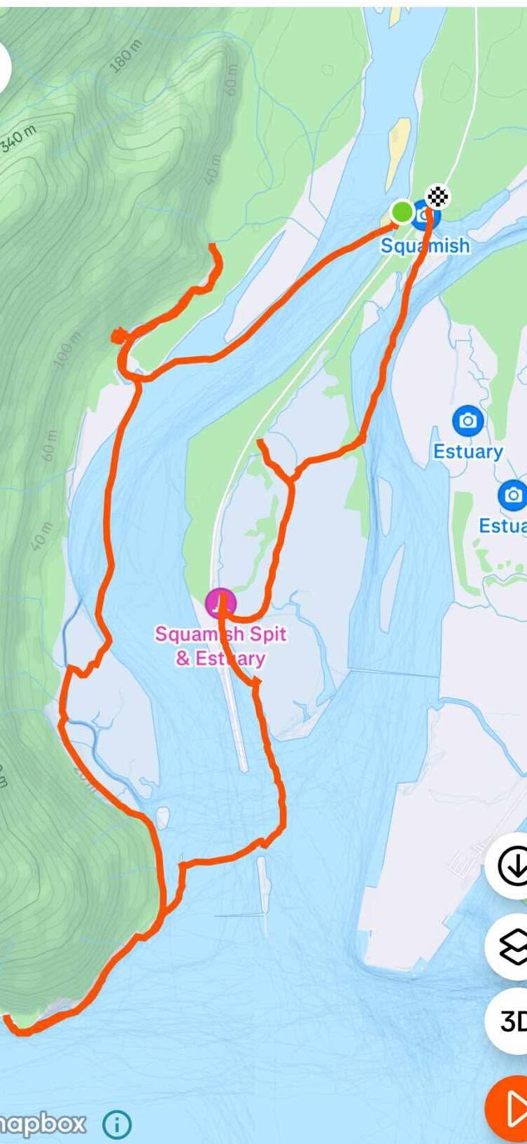 We parked at a pullout area and followed a small trail to launch west of the spit onto Squamish River.