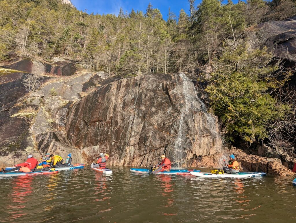 Stawamus Chief, varied paddle routes through side channels, waterfalls, geologically interesting volcanic formations, and steep cliffs of Howe Sound - Facilities – stop in Squamish for food and washrooms before getting onto Spit Road, as there’s no toilet or any service on this gravel road. Good cellphone signal coverage.