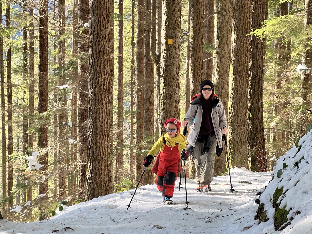 Luckily, our region had a significant snowfall last week, and the temperature had remained below freezing. That meant many North Shore hiking trails were still covered in snow. We needed a trail with enough elevation for a winter wonderland experience but one that was still accessible with our car and safe for our kids. Areas with avalanche risk or places where we can’t easily get to with our city car were out of the question. That led us to Lynn Headwaters Regional Park.