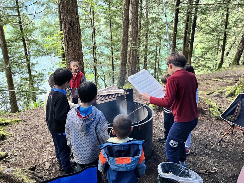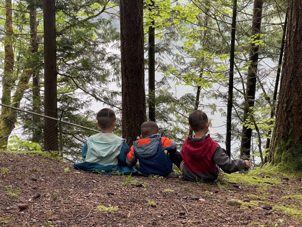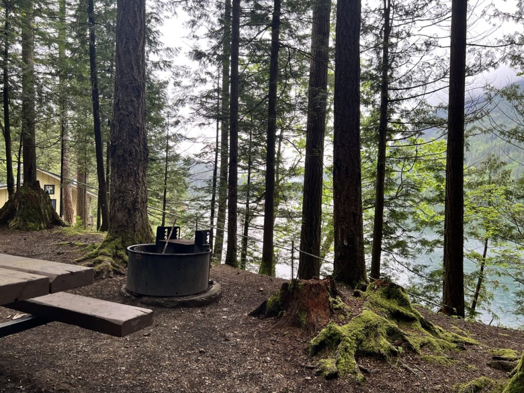 We came with 2 other families: Andrew and Kim, and Matt and Shelly. Interestingly, they were also our camping buddies at our previous Silver Lake (BC Provincial Park) trip. As the weekend drew closer, it became clear that we will have a wet one. We booked Site 1a, 1b, and 4 at Cedar Campground, which are nicely adjacent to each other up a small slope so our 8 (!) kids can easily hop around campsites. Site 1a and b have peek-a-boo views of the lake, but they are also quite close to some pretty steep slopes down to the lake.