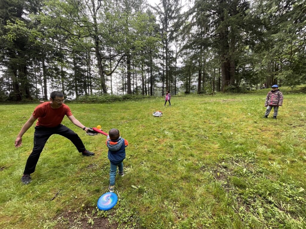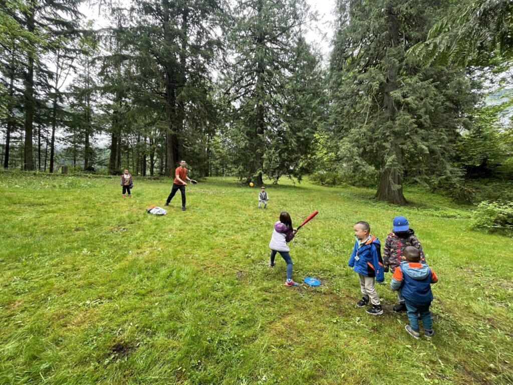 We captured a few hours of breaks from the rain, and played baseball around the campground.