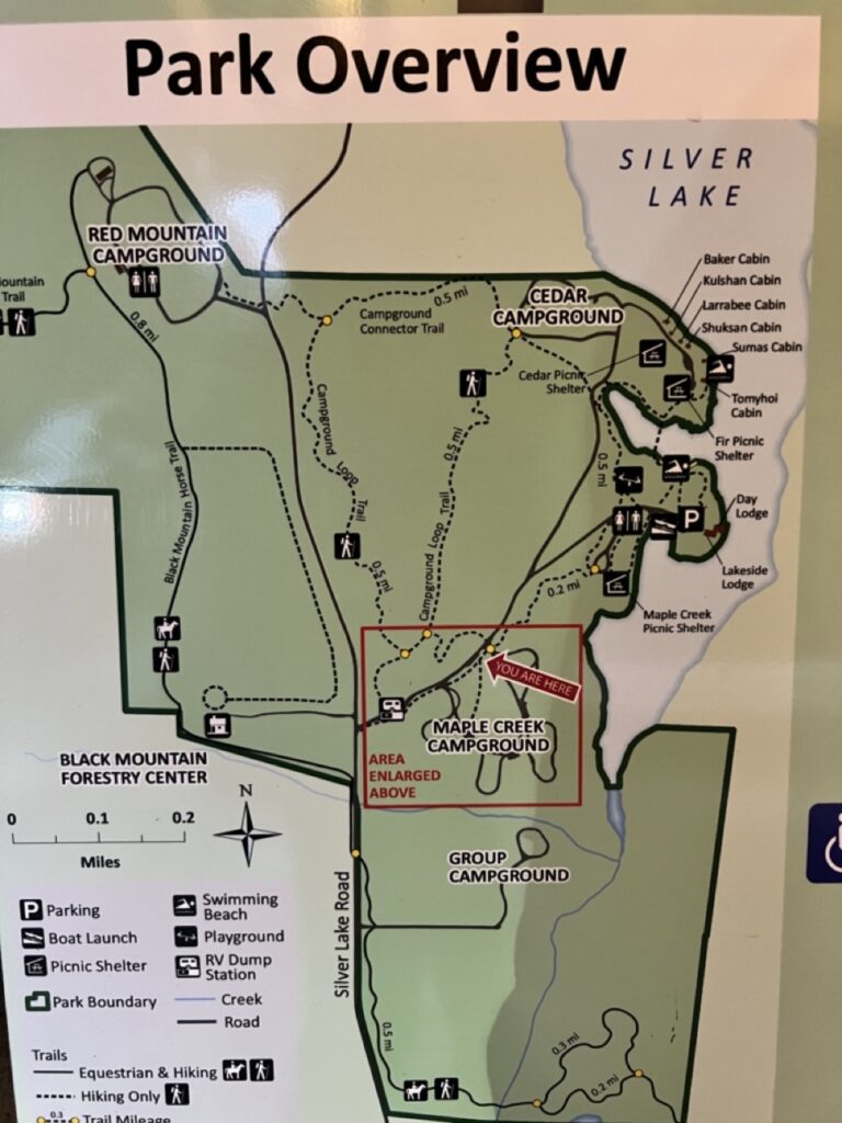 Overall, Silver Lake County Park is a worthy, lesser-known destination outside the Provincial and State Park system. If you are interested in fishing or watersports on a calm, small lake, this may be your jam. This is also a great option if you want to camp with friends who stay in one of the Cedar cabins, but the nice shower and flush toilet facility is about 1km drive away at the deluxe Maple Creek campground.