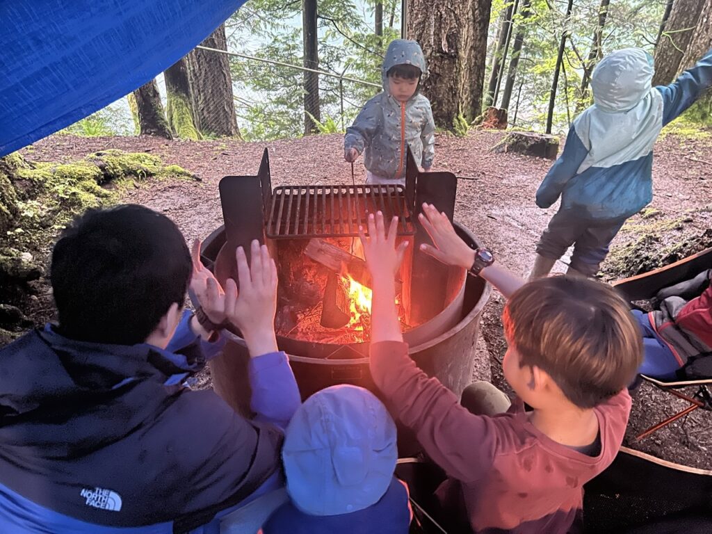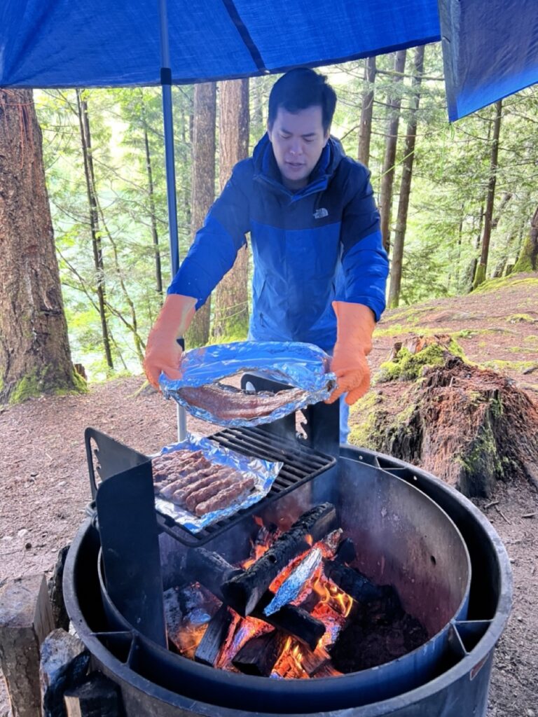 We managed to pull this off and got to enjoy hours of campfire under constant rain. Andrew even got to live his dream of open fire cooking.