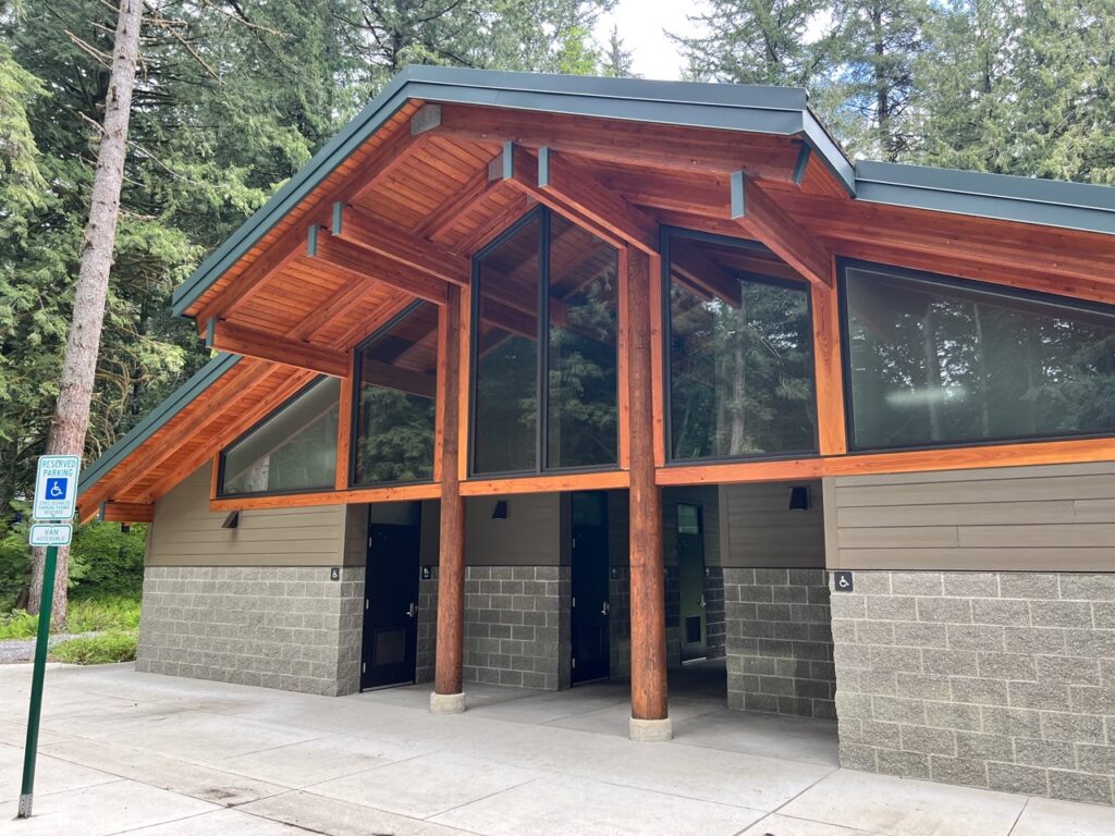 Cedar Campground has only basic amenities: water tap and pit toilets. The neighboring Maple Creek campground (designed for RVs) on the other hand has a fantastic washroom. Why do the RVers need a fancy washroom when their rigs already come with showers and toilets, while the campers and cabin users at Cedar who pay good money only get pit toilets? We could always drive over to the Maple Creek side and use the washroom I guess.