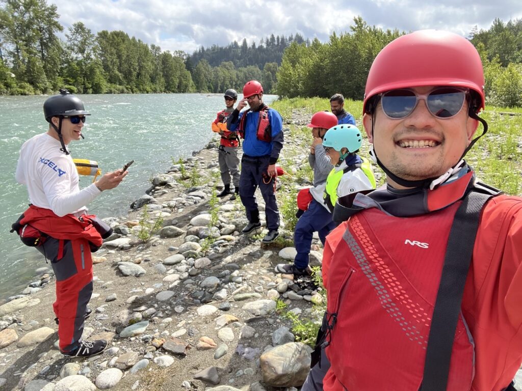 With our gears ready, we gathered at Vedder Park in Chilliwack for dry land instructions. Ken walked us through the basics of how a river behaves, what hazards to watch for, and the theory of how to use Power, Approach, and Lean to tackle the river.