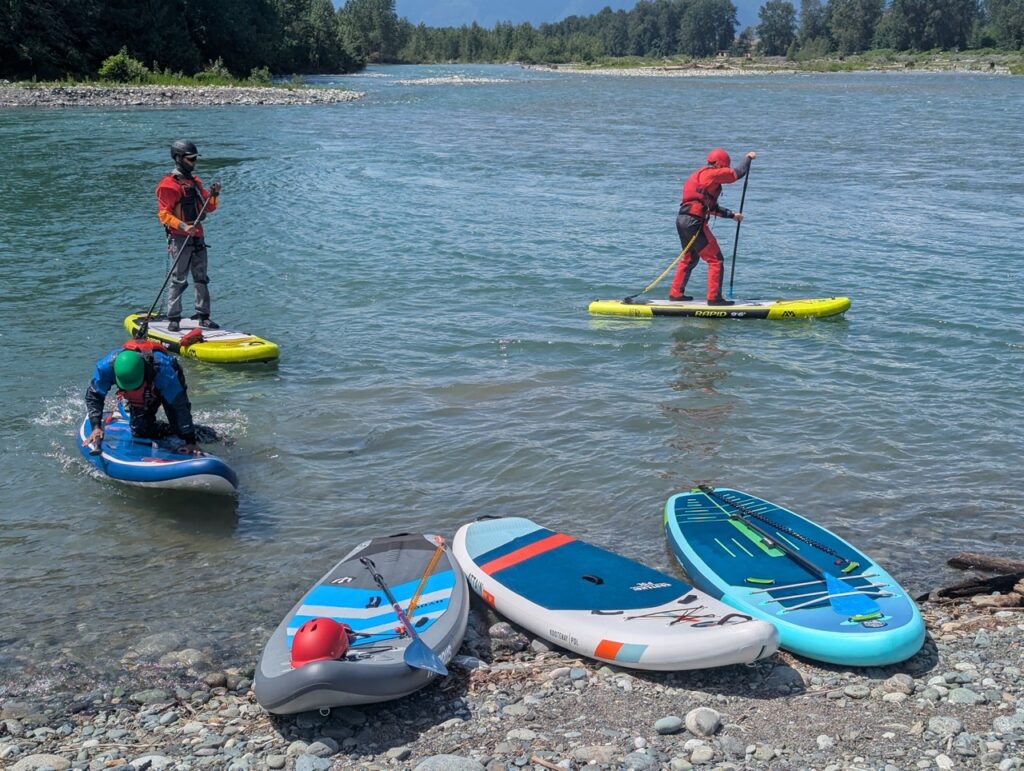 Thanks to our amazing Facebook group, it was easy to find enough like-minded and similarly-skilled paddleboarders to register for a River 1 Paddleboarding Course with Ken Larsen in Chilliwack (actually we had so much interest, we organized 4 groups of 5-6 students).