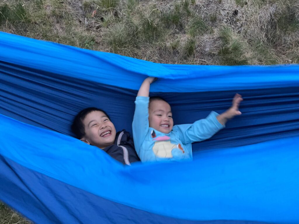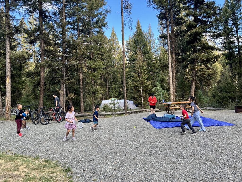 For this group trip, we managed to gather a total of 13 family groups for a total of 50 people this outing. The looped shape made us pretty spread out, but we still tried to mingle between sites as much as possible. Many of the participants are old friends who have made appearances on our blog before, but some are new friends who came camping with us for the first time. It would be more cohesive if we had a central activity hub like a large picnic shelter or a shared field.
