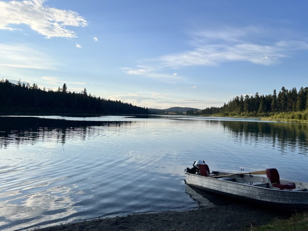 Kentucky Alleyne are the names of two beautiful turquoise lakes east of Merritt. Alleyne Lake lies north of Kentucky Lake, and they are similar in size. Alleyne Lake has a sizable public parking lot, good for day trippers. Kentucky Lake only has a small area for parking near the boat launch, and it’s only open to registered guests.