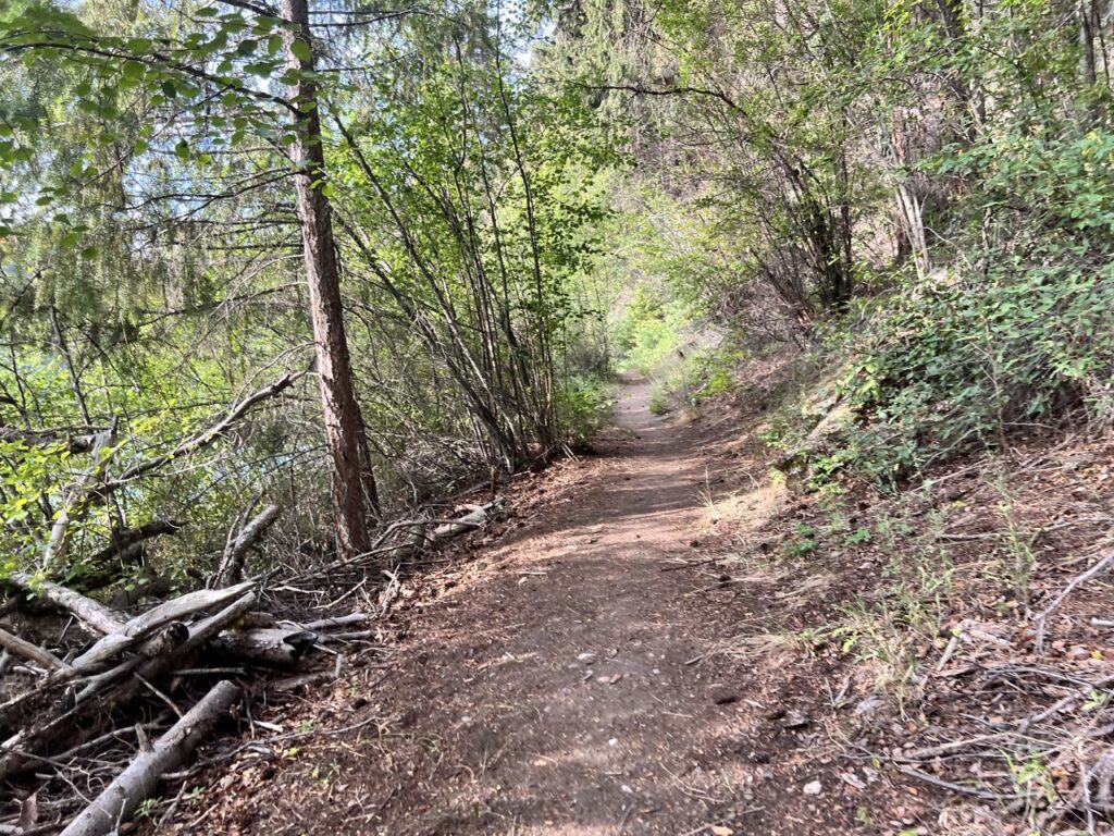The center of the loop is a raised, undeveloped area of grass and trees. The kids had some fun climbing the slope to explore this area, but beware of fallen branches and uneven ground.