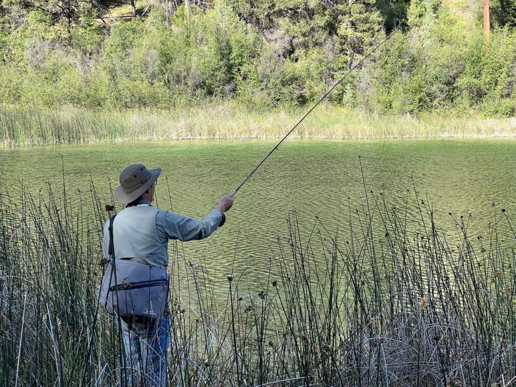 My dad tried his luck at fishing in the small Trophy Lake east of Kentucky Lake based on recommendations from a camp host, but the lake shore was badly overgrown with grass and bush so he had no success even casting his line.