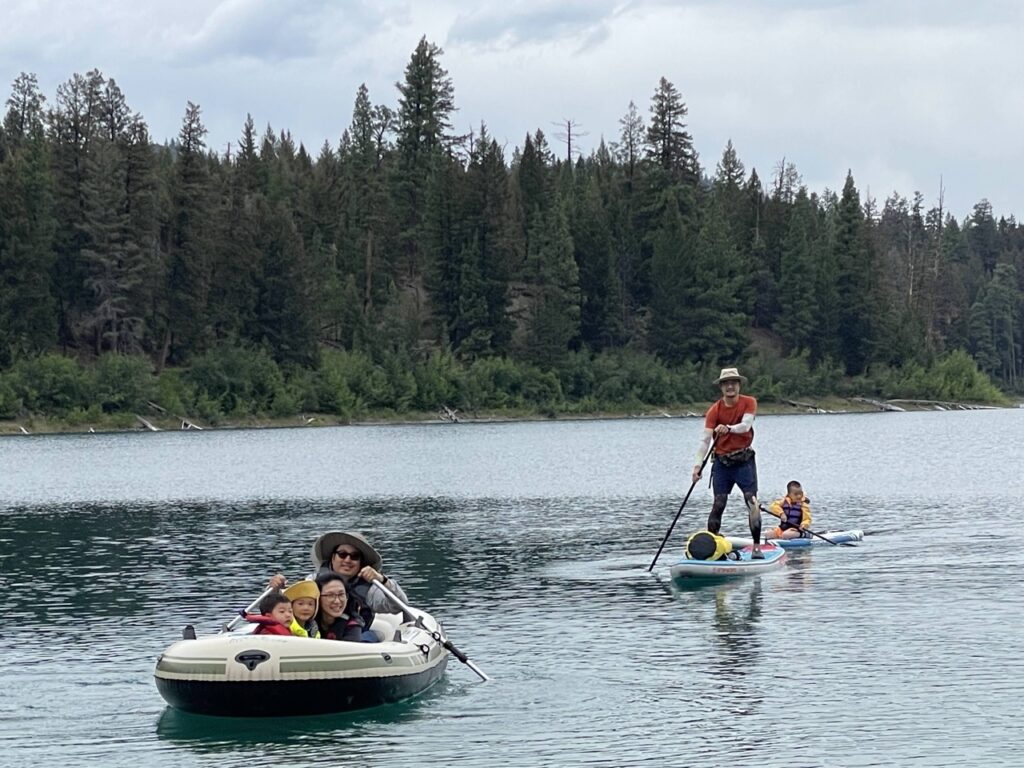 We kept things loose and flexible for the most part. Some of us arrived a day later and stayed to play on the lakes, while about half of us headed east to bike the Myra Canyon Trestles near Kelowna.