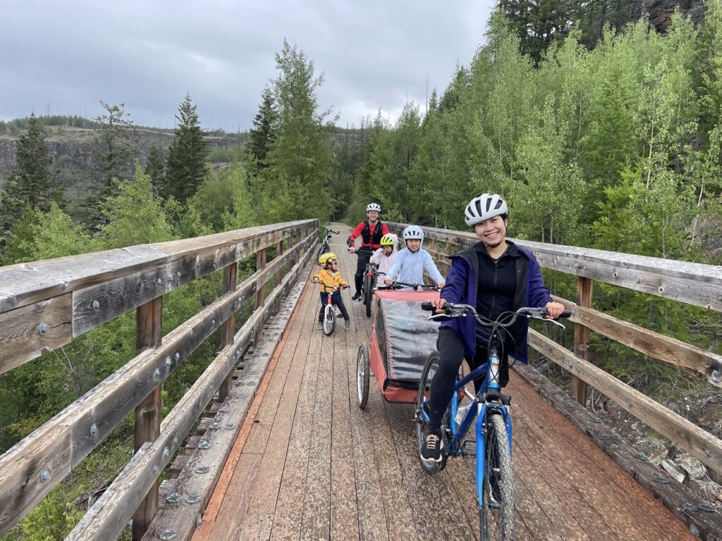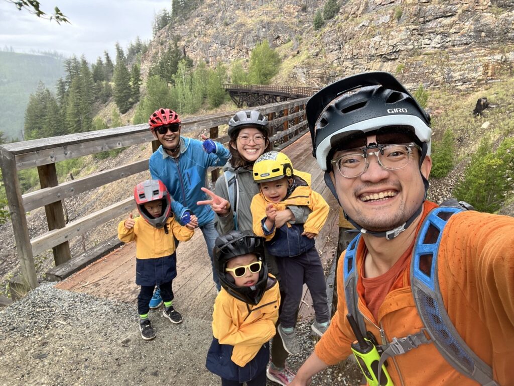 Our plan worked out well since Tina and Baby Bro only managed about 2.5km by the time Big Bro and I finished the trail and returned. We hung out with Baby Bro while Tina biked ahead to see the best views of the whole trail around Trestle #6.