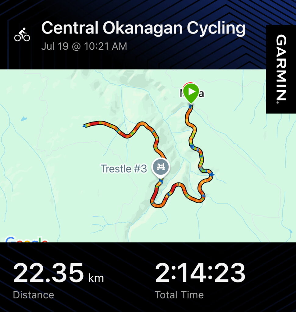 - Points of interest: 18 trestles, 2 tunnels, and expansive views down the canyon towards Kelowna