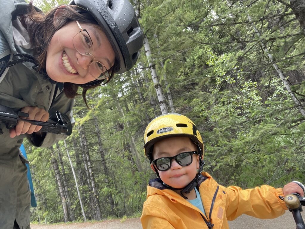 There were sections of the trail with steep drop-off on one side, and due to the popularity, the trail can get busy with walkers and bikers. Extra care should be taken for less confident riders. Tina would get off the bike and walk with Baby Bro when there’s any sign of danger or congestion.