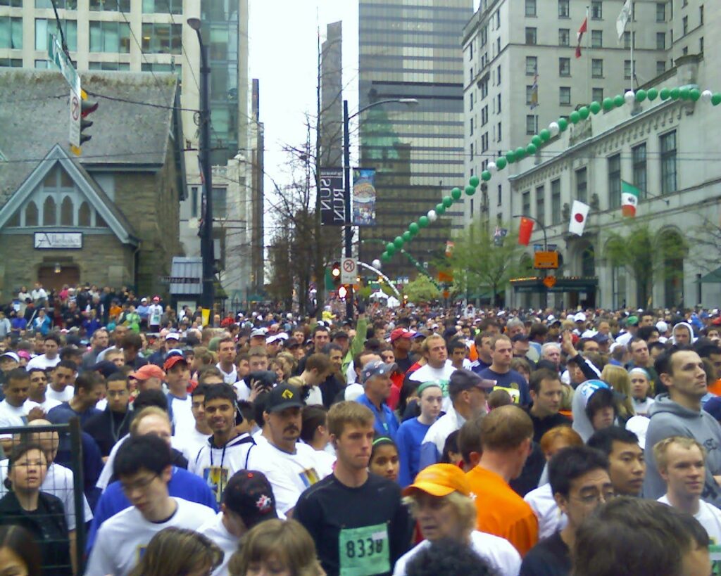The washroom line up in Pacific Centre was horrendous. Interestingly the rows of portable toilets prepared by the organizers at the staging area were basically empty. Definitely use these instead. Do NOT rely on the toilets on the race route, because every stop seems like a solid 5-10 minute wait that will for sure ruin your race time and pacing.