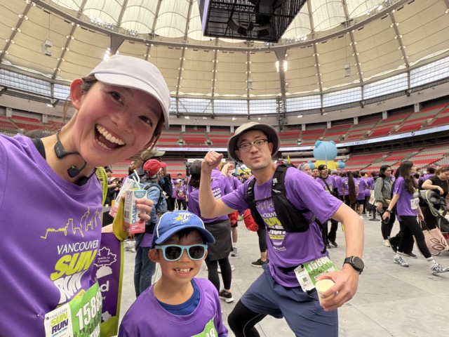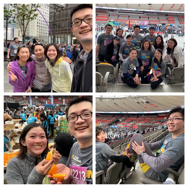 We met up with the rest of the gang in BC Place for the iconic goodies booths. Tina scored a personal Sun Run record of 59:43.