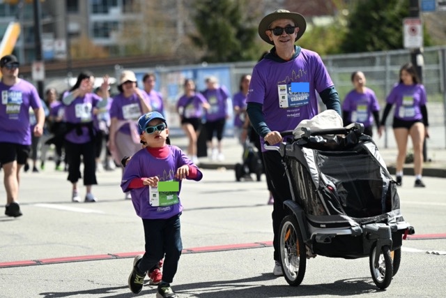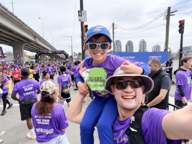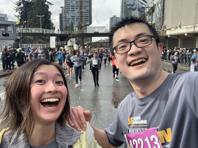 I constantly checked in with him to see how his energy level was doing, and each time I got a positive response to hold the pace and keep going. The music bands, the cheering squads, and the constant weaving between people kept things interesting. The views of English Bay, Burrard Bridge, and some epic cherry blossoms along 3rd Ave near Pine St were spectacular and invigorating.